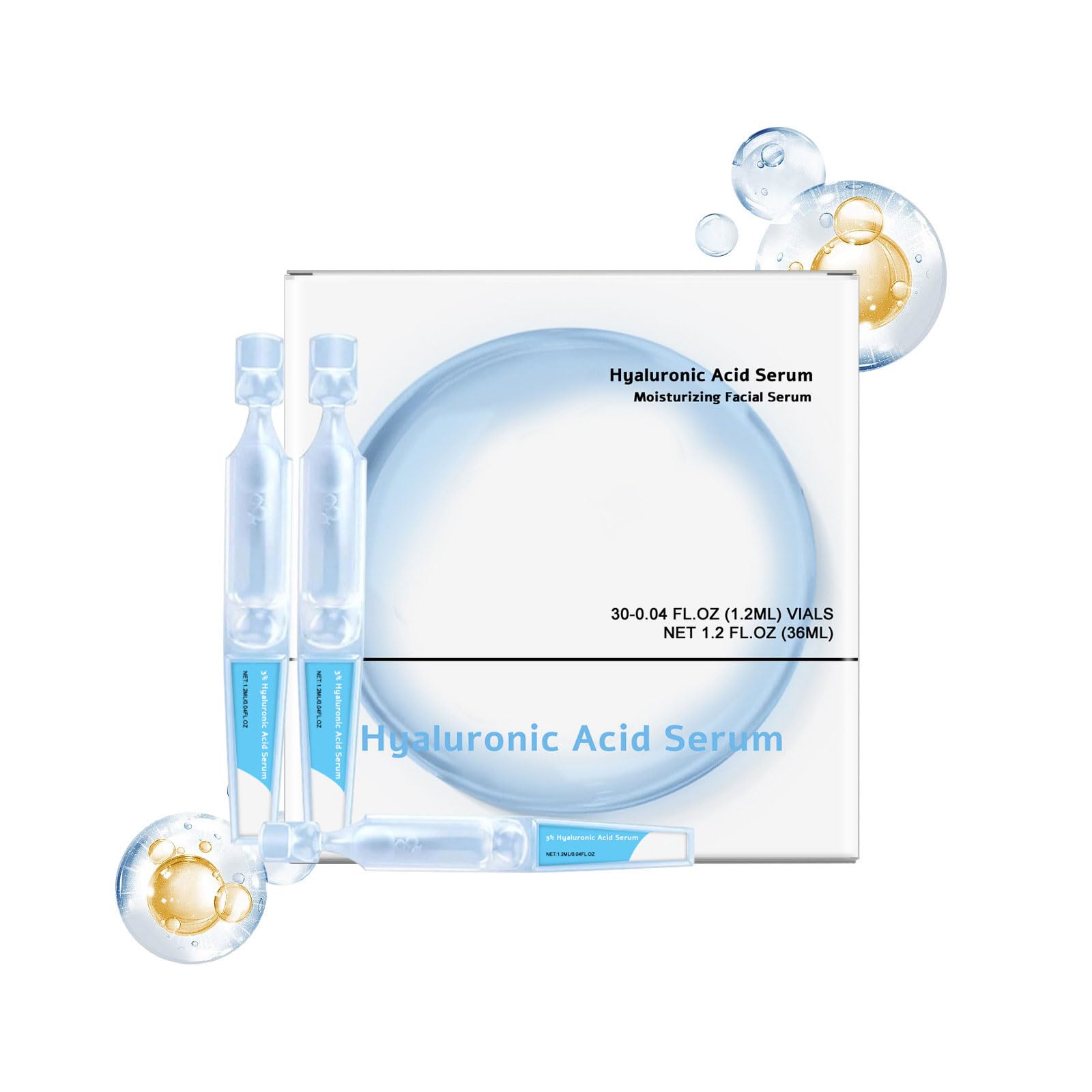 Transform your skincare routine with this powerful Hyaluronic Acid Serum, designed to deliver deep moisture and enhance your skin's natural texture. Each package contains 30 pieces, making it a perfect addition to your daily regimen. The serum works to intensely hydrate and plump your skin, helping to minimize the appearance of fine lines while promoting a smoother, more radiant complexion. Specially formulated for dry and sensitive skin types, this gentle yet effective serum helps maintain skin's moisture balance without causing irritation. The lightweight formula absorbs quickly into the skin, leaving no sticky residue while providing long-lasting hydration. Whether used in your morning or evening routine, this serum helps create a more supple, refreshed appearance. For best results, apply to clean, slightly damp skin before moisturizer to lock in maximum hydration.Precise and Convenient Packaging: Each single-use vial provides the perfect, mess-free amount for one application, offering convenience, promoting consistent usage, and ensuring product freshness and potency. Improves Skin Texture: Aims to enhance the skin's surface by relieving dry, rough patches and promoting a smoother, more even texture, resulting in a healthier-looking and more radiant glow. Ideal for Sensitive Skin: Formulated to be gentle and burden-free on the skin, making it a suitable and effective daily care option for those with sensitive skin or those seeking a calming serum. Nourishes with Key Ingredients: Combines the hydrating power of Hyaluronic Acid with the nourishing benefits of Collagen and Squalane to improve skin texture, enhance softness, and support overall skin health. Deeply Hydrates and Moisturizes: Designed to penetrate deeply, effectively locking in moisture and providing long-lasting hydration to relieve dryness, leaving skin feeling soft, smooth, and comfortably nourished.