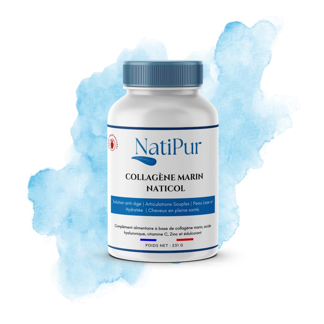 DESCRIPTION DU PRODUIT Tonicité de la peau et soin des articulations Collagène Marin hydrolysé Naticol Fabrication française Format poudre, arôme fraise naturel Favorisez l'élasticité de votre peau et la mobilité de vos articulations avec notre Collagène Marin en poudre Naticol, aux effets cliniquement prouvés.