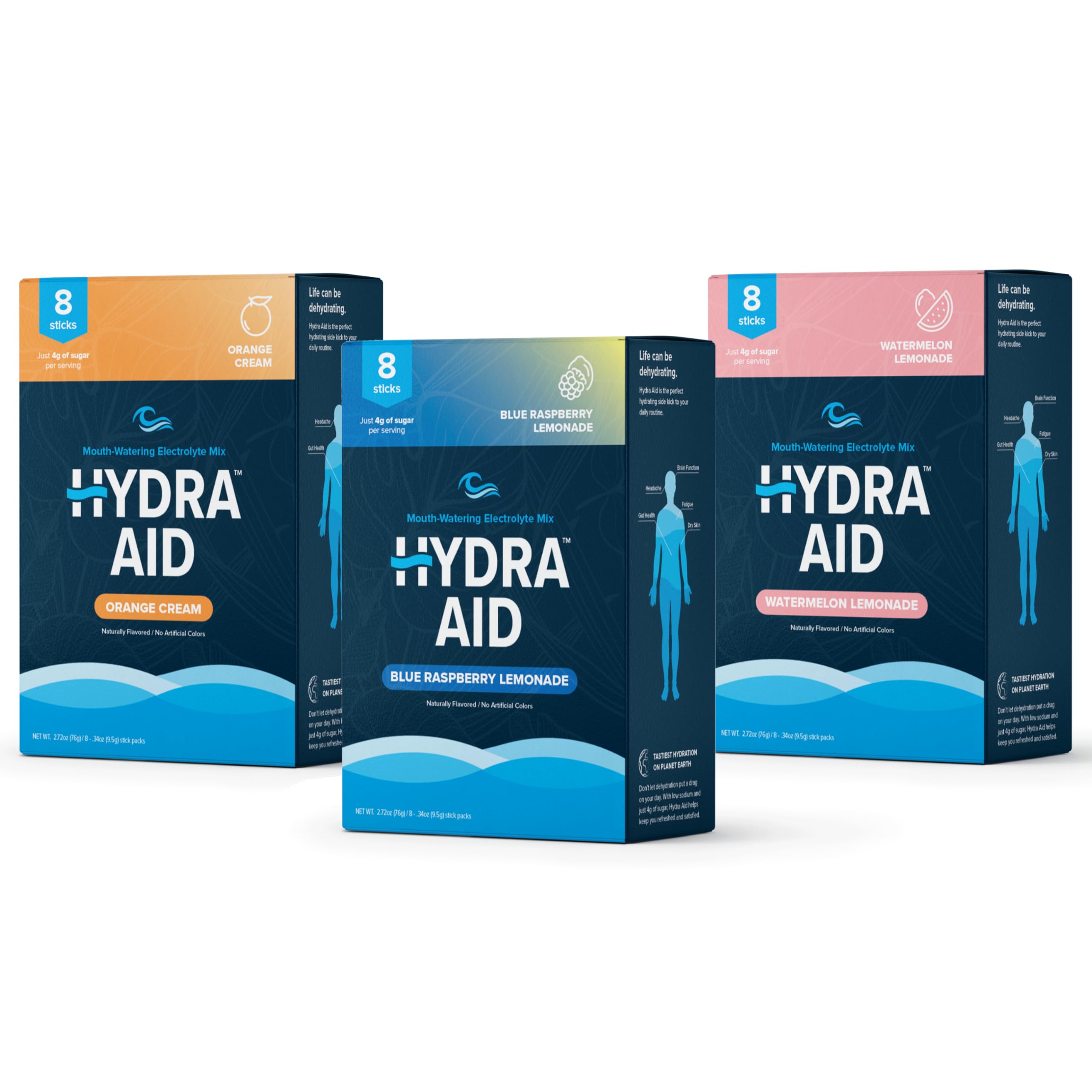 Hydra Aid is a hydration powder mix made for those who want effective electrolytes and vitamins without high sodium or excess sugar. Each stick pack blends a marine-mineral electrolyte formula with Vitamins B, C, and D to help restore balance and keep you feeling refreshed. What makes Hydra Aid different? - Less sodium and sugar than traditional sports drinks - Just 4g of sugar per serving for light, clean hydration - Naturally flavored that tastes smooth and refreshing - Vegan, non-GMO, gluten free, and soy free - Convenient grab-and-go packets you can take anywhere Whether you're working out, traveling, breastfeeding, or simply trying to stay hydrated during the day, Hydra Aid delivers hydration that feels good and tastes great—without the salty aftertaste.Clean, Conscious Formula - Made with your lifestyle in mind, Vegan, Non-GMO, Gluten-Free, Soy-Free, Naturally Flavored with NO Artificial Colors. A hydration solution that's simple, effective, and family-friendly. Hydration for Real Life - From gym sessions to travel to busy mom life (including breastfeeding moms who need extra hydration), Hydra Aid stick packs are designed to flavor up to 32oz of water for all-day sipping. Toss one in your bag, bottle, or Stanley cup and stay refreshed anywhere. Electrolytes Essential Vitamins - Go beyond basic hydration. Every stick delivers electrolytes plus Vitamins B, C D, along with Potassium and Copper, supporting energy, hydration balance, and daily wellness needs. Low Sugar, Light Refreshing - Each serving contains just 4g of sugar, offering a clean, guilt-free way to hydrate. A delicious alternative to sugar-heavy supermarket drinks, with a smooth flavor you'll actually enjoy. Superior Hydration, No Salty Aftertaste - Formulated with a unique marine-mineral electrolyte blend, Hydra Aid replenishes hydration effectively, without the overpowering salty or artificial taste common in other brands. Great for active individuals or anyone watching sodium intake.