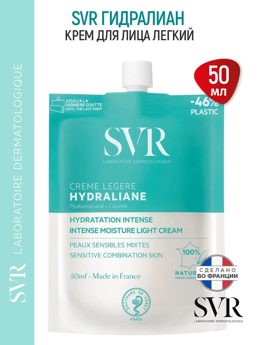Гиалуроновый крем для лица SVR Hydraliane легкий предназначен для обеспечения длительного увлажнения сухой кожи лица или кожи подверженной негативному воздействию природных факторов. Легкий крем на 60% состоит из обогащенной микроэлементами физиологически адаптированной воды, которая обеспечивает мгновенное и продолжительное увлажнение. Благодаря текстуре нового поколения, структурированной с помощью жидких кристаллов, SVR Hydraliane Legere имитирует естественные увлажняющие процессы в коже и обеспечивает непрерывную гидратацию в течение 24 часов. Обогащенная гидрофильными полисахаридами формула удерживает влагу внутри эпидермиса. SVR Гидральян Крем легкий мгновенно проникает в кожу, делая ее сияющей, матовой, и дарит комфорт, который сохраняется на протяжении дня. Благодаря нежирной, легкой текстуре средство моментально впитывается. Может использоваться как основа под макияж.