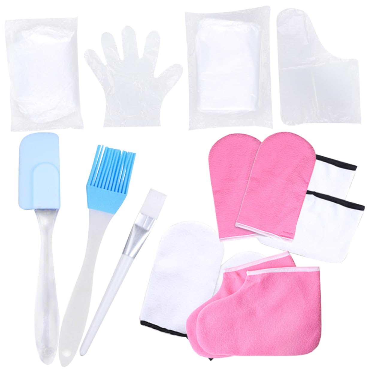 Package List: 1 x Small Spatula, 1 x Wax Brush, 1 x Small Hairbrush, 2 x Foot Covers. Foot Covers Features: - Note: Accessory colors are random. - Material: PP, cotton, and silicone paraffin hand wax. - Size: 17.50 x 6.00 x 3.00 cm 6.88 x 1.18 inches. - Enhances the moisturizing effect with these covers, you can enjoy a paraffin treatment just like in a salon. - Keeps your skin warm with the hot paraffin to help nutrients penetrate your hand moisturizers. - Made from durable, comfortable, skin-friendly, and lightweight materials for hand waxing. - Fully washable and specially designed to maximize heat retention during a paraffin wax treatment. - Activate tissues, circulation, and improve absorption. Treat yourself to a moisturizing hand and foot treatment overnight. Product information: Body scrub, professional bath spa supplies, works great for paraffin wax baths, hot wax therapy, and hand wax treatments. Hand moisturizers: Apply a moisturizing cream or lotion to your hands or feet, and use these with foot covers for best results. Hand wax: Or you can use it for hand and foot care.