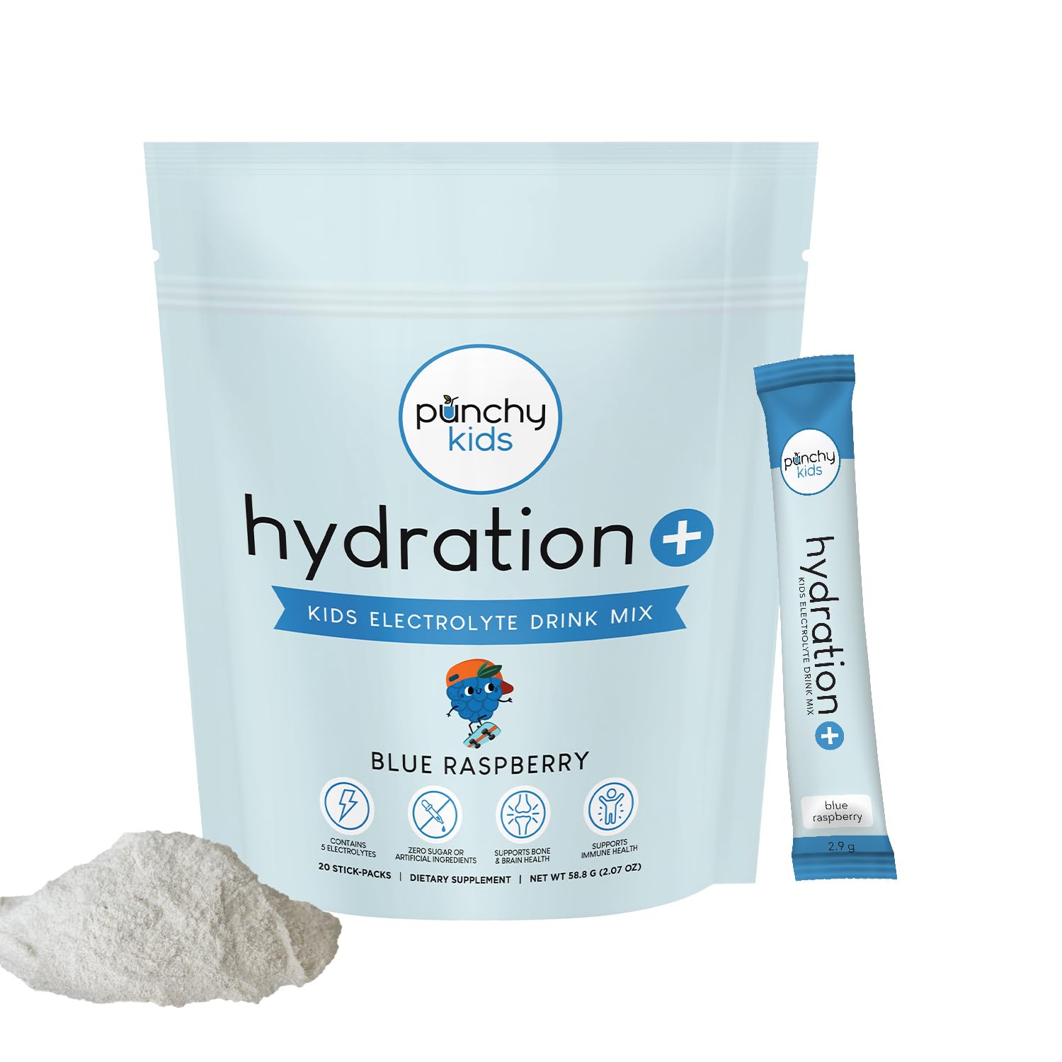 Hydration+ Electrolyte Drink Mix for Kids Sugar Free, Immune & Bone Support with Vitamin D, Zinc & K2 Blue Raspberry, 20 Stick Packs Blue Raspberry (20 Stick Packs)