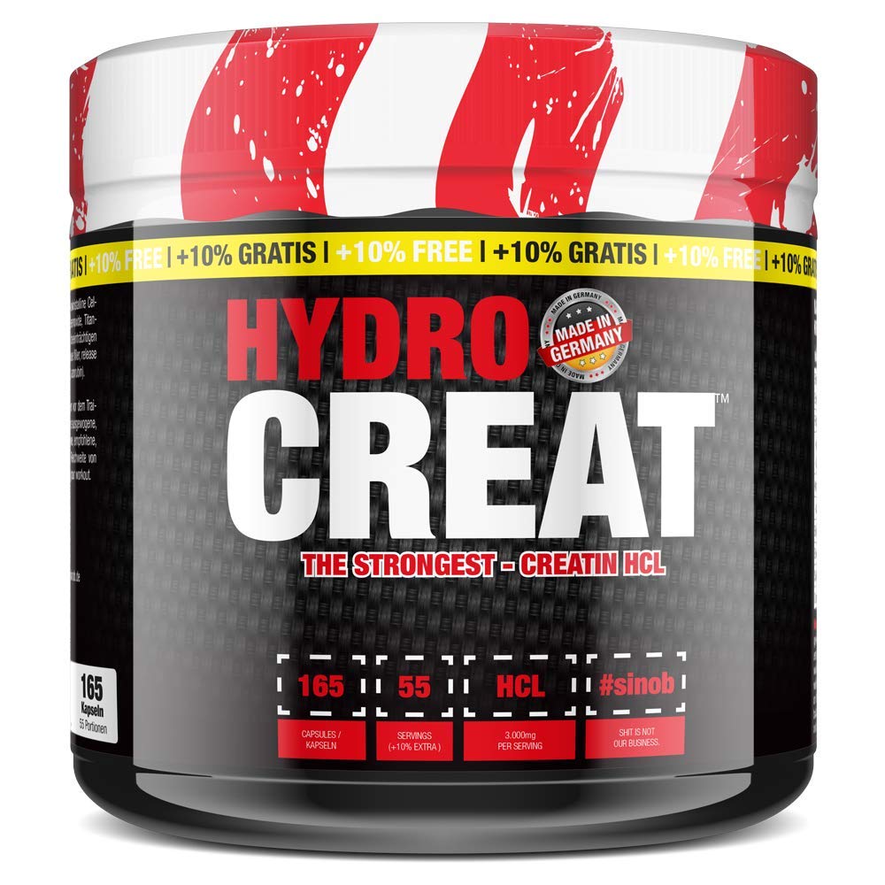 Hydro-Create Creatin HCL Capsule form for ideal supply also on-the-go. Special features of the Hydro Create Our Creatin HCL is manufactured in Germany and then refined in France according to the latest technology standards.Back there is a handy capsule form each 1g of creatine and is therefore perfect for on-the-go, on vacation or for other situations in which the powder form is too complicated in taking. What is creatineCreatin is part of the creatine phosphate system and represents an elementary substrate for muscular energy supply. Although it also occurs in larger quantities, e.g. in red meat, this is not sufficient to completely fill the muscular creatine memory.An additional supplementation can be remedied here. What does creatine bringCreatine increases physical performance in successive outbreaks of short -term training with high intensity Content scope of delivery: 1 can with 165 capsules Details 165 capsules (10 free) 1,000 mg specially refined creatine HCL Made in Germany refined in France 55 portions Ingredients ingredients Creatine hydrochloride, capsule shell: gelatin, filler: microcrystalline cellulose, separating agent (magnesium salts of the food fatty acids), dye (iron oxides, titanium dioxide, azorubin). Instructions Take 3 capsules every day, about 25-30 minutes before training. Warnings Dietary supplements do not serve as a replacement for a balanced, varied diet and a healthy lifestyle.The recommended daily dose should not be exceeded.The product must not be taken during pregnancy and during breastfeeding.Keep out of reach of children!Store cool, dry and dark. Address manufacturer importer sinob GmbH, Hamburger Straße 2-6, 22946 Grande Moremade in Germany - Of course, our product in Germany is manufactured in Germany according to the strictest quality standards DIN EN ISO 13485: 2016, IFS Food, HACCP and GMP.If there are problems, write us about .This brings creatine creatine increases the physical performance of the explosiv force with highly intensive exercises.High recording - creatine HCL can be absorbed by the body particularly quickly and is very well tolerated.1,000 mg specially refined creatine HCL - Hydro -Create is manufactured in Germany and then refined in France according to the latest technology standards.Each capsule can be dosed perfectly with 1g creatine each, even for on the go.High -dose creatine capsules - our Creatine capsules contain 1000 mg pure creatine hydrochloride.With a daily portion of 3 capsules, the 3 g of active ingredient content corresponds.Hydro-Creat Creatin HCl Creatin in Kapselform für eine ideale Versorgung auch on-the-go. Besonderheiten am Hydro Creat Unser Creatin HCL wird in Deutschland hergestellt und dann in Frankreich nach neuesten Technikstandards veredelt. Zurück kommt es in handlicher Kapselform zu je 1g Creatin und eignet sich damit perfekt für on-the-go, im Urlaub oder für andere Situationen, in denen die Pulverform zu kompliziert in der Einnahme ist. Was ist CreatinCreatin ist ein Teil des Creatin-Phosphat-Systems und stellt ein elementares Substrat für die muskuläre Energiebereitstellung dar. Zwar kommt es auch in größeren Mengen z.B. in rotem Fleisch vor, dies reicht jedoch nicht aus, um die muskulären Kreatinspeicher vollständig zu füllen. Abhilfe schafft hier eine zusätzliche Supplementierung. Was bringt CreatinKreatin erhöht die körperliche Leistungsfähigkeit in aufeinanderfolgenden Ausbrüchen von kurzfristigem Training mit hoher Intensität Inhalt Lieferumfang: 1 Dose mit 165 Kapseln Details 165 Kapseln (10 gratis) 1.000mg speziell veredeltes Creatin HCl in deutschland hergestellt in Frankreich veredelt 55 Portionen INHALTSSTOFFE ZUTATEN Creatin Hydrochlorid, Kapselhülle: Gelatine, Füllstoff: mikrokristalline Cellulose, Trennmittel (Magnesiumsalze der Speisefettsäuren), Farbstoff (Eisenoxide, Titandioxid, Azorubin). GEBRAUCHSANWEISUNG Täglich 3 Kapseln, ca. 25-30 Minuten vor dem Training einnehmen. WARNHINWEISE Nahrungsergänzungsmittel dienen nicht als Ersatz für eine ausgewogene, abwechslungsreiche Ernährung und gesunde Lebensweise. Die angegebene, empfohlene, tägliche Verzehrmenge darf nicht überschritten werden. Das Produkt darf nicht während der Schwangerschaft und während der Stillzeit eingenommen werden. Außerhalb der Reichweite von Kindern aufbewahren! Kühl, trocken und dunkel lagern. ANSCHRIFT HERSTELLER IMPORTEUR sinob GmbH, Hamburger Straße 2-6, 22946 Grande MehrMADE IN GERMANY - Selbstverständlich wird unser Produkt in Deutschland nach den strengsten Qualitätsstandards DIN EN ISO 13485: 2016, IFS FOOD, HACCP und GMP hergestellt. Bei Problemen schreibt uns über . DAS BRINGT KREATIN - Kreatin steigert die körperliche Leistungsfähigkeit der Explosivkraft bei hochintensiven Übungen. HOHE AUFNAHME - Creatine-HCL kann besonders schnell vom Körper aufgenommen werden und ist sehr gut Verträglich. 1.000 MG SPEZIELL VEREDELTES KREATIN HCL - Hydro-Creat wird in Deutschland hergestellt und dann in Frankreich nach neuesten Technikstandards veredelt. Jede Kapsel ist mit je 1g Creatin perfekt zu dosieren, auch für unterwegs. HOCHDOSIERTE CREATIN KAPSELN - Unsere Creatine kapseln enthalten 1000 mg reines Creatin Hydrochlorid. Bei einer Tagesportion von 3 Kapseln entspricht das 3 g Wirkstoffgehalt.Hydro Creat Creatin HCL - 1 x 165 Kapseln - 1.000 mg speziell veredeltes Creatin HCl pro Kapsel - Hochdosiert mit 3000 mg pro Tag - optimal für den Muskelaufbau Ohne Ladephase