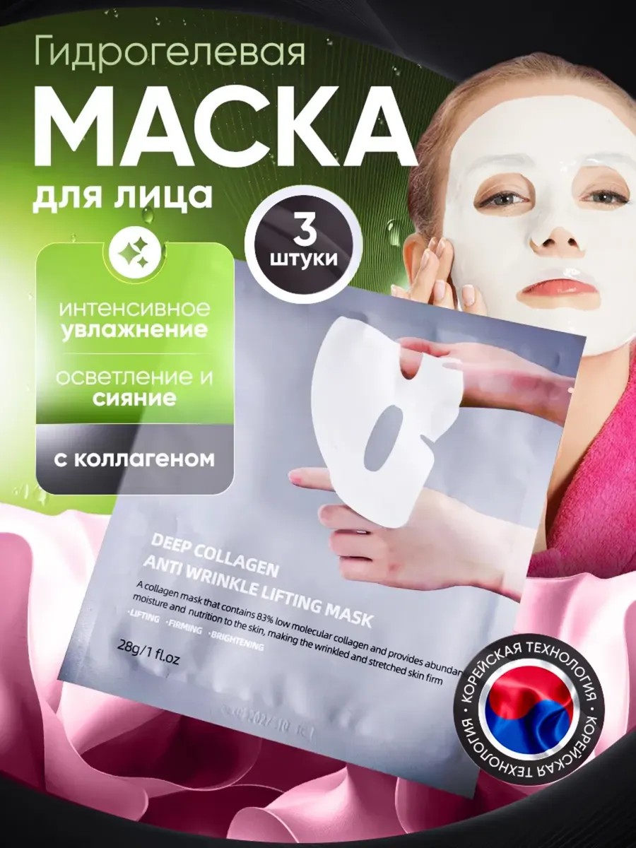 Гидрогелевая маска для лица с коллагеном 3 штуки