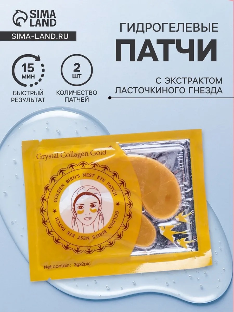 The price is for 6. Hydrogel eye patches with swallow's nest extract: skin care and rejuvenation. Hydrogel eye patches with swallow's nest extract provide comprehensive skin care. The set includes 6 patches, allowing for regular use and enjoyable results. The patches adhere closely to the skin, ensuring deep penetration of the beneficial ingredients. This helps combat puffiness, reduce the appearance of dark circles, hydrate, and infuse the skin with vitamins. Swallow's nest extract, rich in iodine, iron, calcium, phosphorus, amino acids, and other beneficial substances, strengthens the skin's protective functions, renewing and rejuvenating it. Directions for use: remove the patches and apply to cleansed skin around the eyes. Remove after 15-20 minutes and gently massage with your fingertips. For best results, store the patch package in the refrigerator. The hydrogel patches contain water, glycerin, beta-glucan, cubylose, trehalase, chondrus crispus powder, hydrolyzed collagen, methylparaben, propylene glycol, chlorphenesin, hydrogenated castor oil, and fragrance.