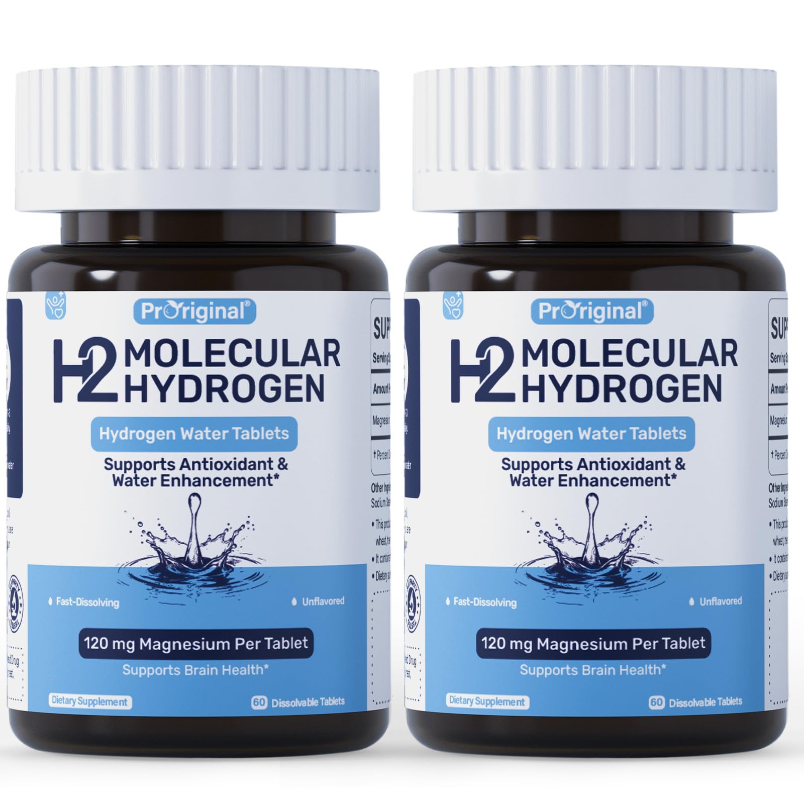 Hydrogen Water Tablets - 12 PPM H2 Molecular Hydrogen - 120 mg Magnesium-Based Reaction System - Supports Antioxidant & Cellular Health Energy & Brain Function - Non-GMO Unflavored - 120 Tablets Unflavored 60 Count (Pack