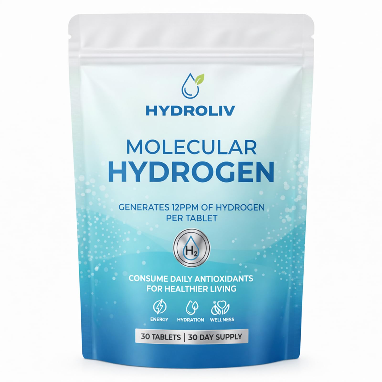 Hydroliv Molecular Hydrogen Water Tablets High-Concentration Hydrogen Generator for Enhanced Hydration & Daily Vitality Vegan & Gluten-Free Effervescent Water Booster Pack