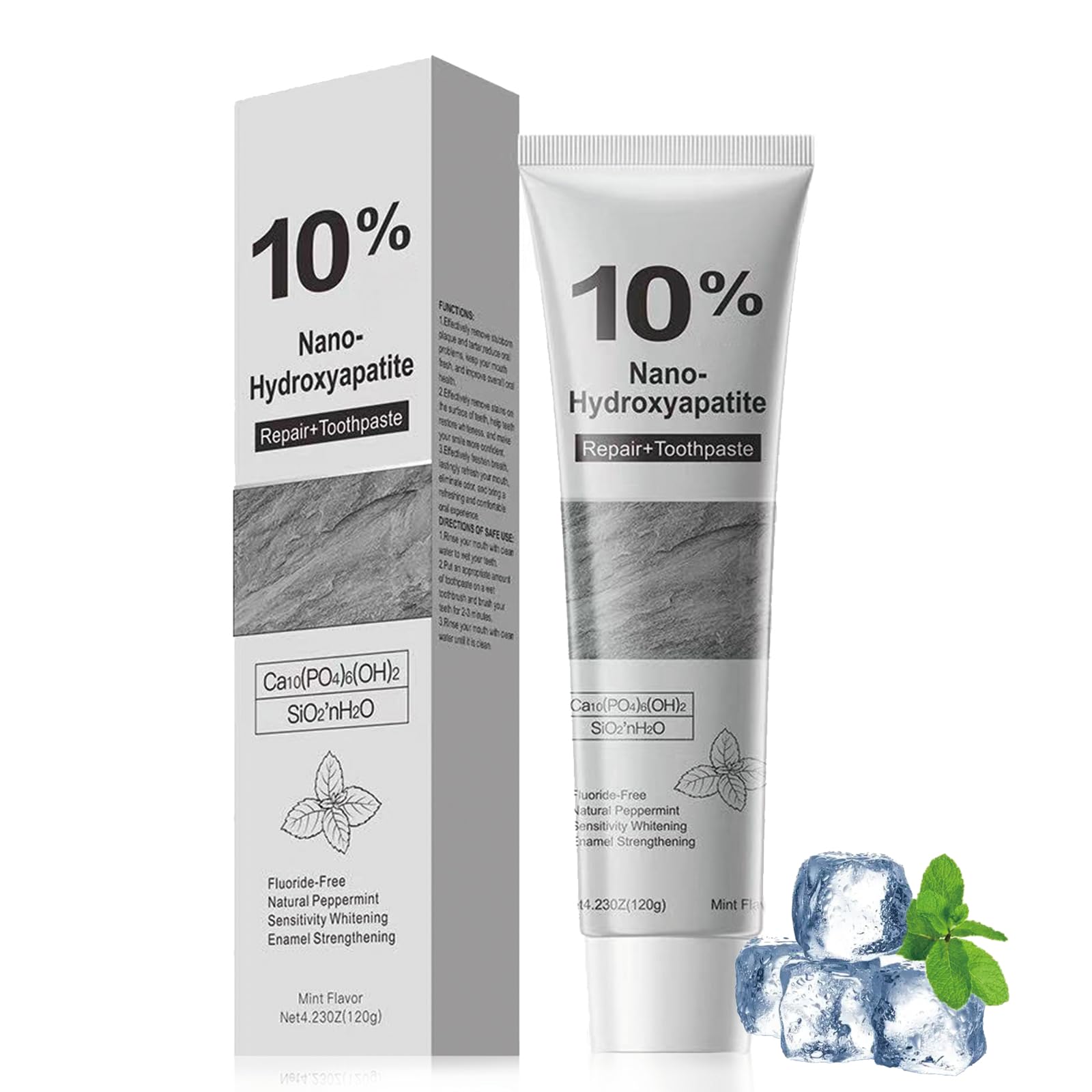 Hydroxyapatite Toothpaste 10% Nano-Hydroxyapatite Toothpaste for Advanced Enamel Protection Fluoride Free Toothpaste Whitening Teeth Enamel Care Gentle Mint Fresh Breath (1)