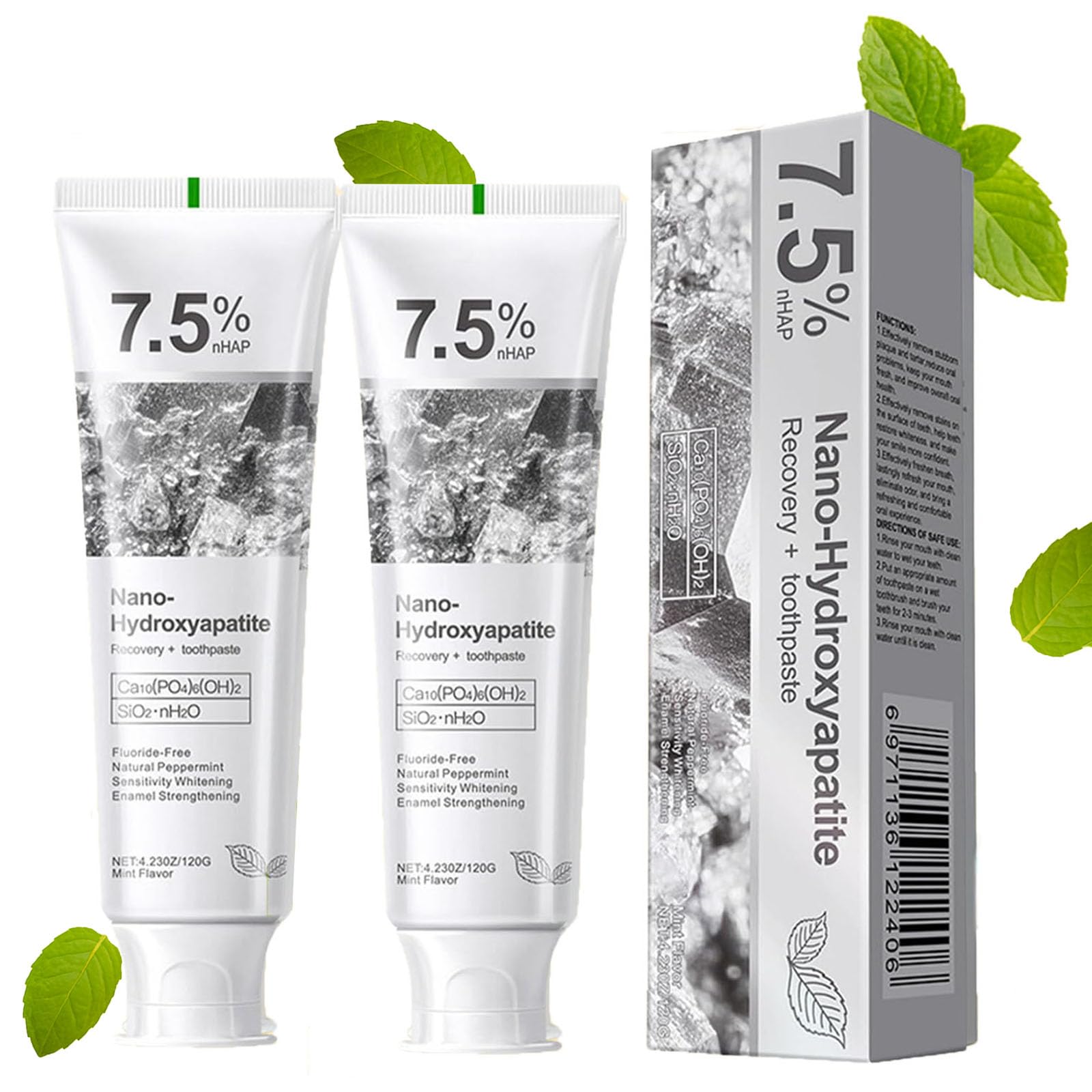 Hydroxyapatite Toothpaste 7.5% Nano Deep Cleaning Toothpaste for Advanced Enamel Protection Sensitive Relief Fluoride Free Effective Toothpastes with Fresh Mint (4.2 Fl Oz (Pack of 2))