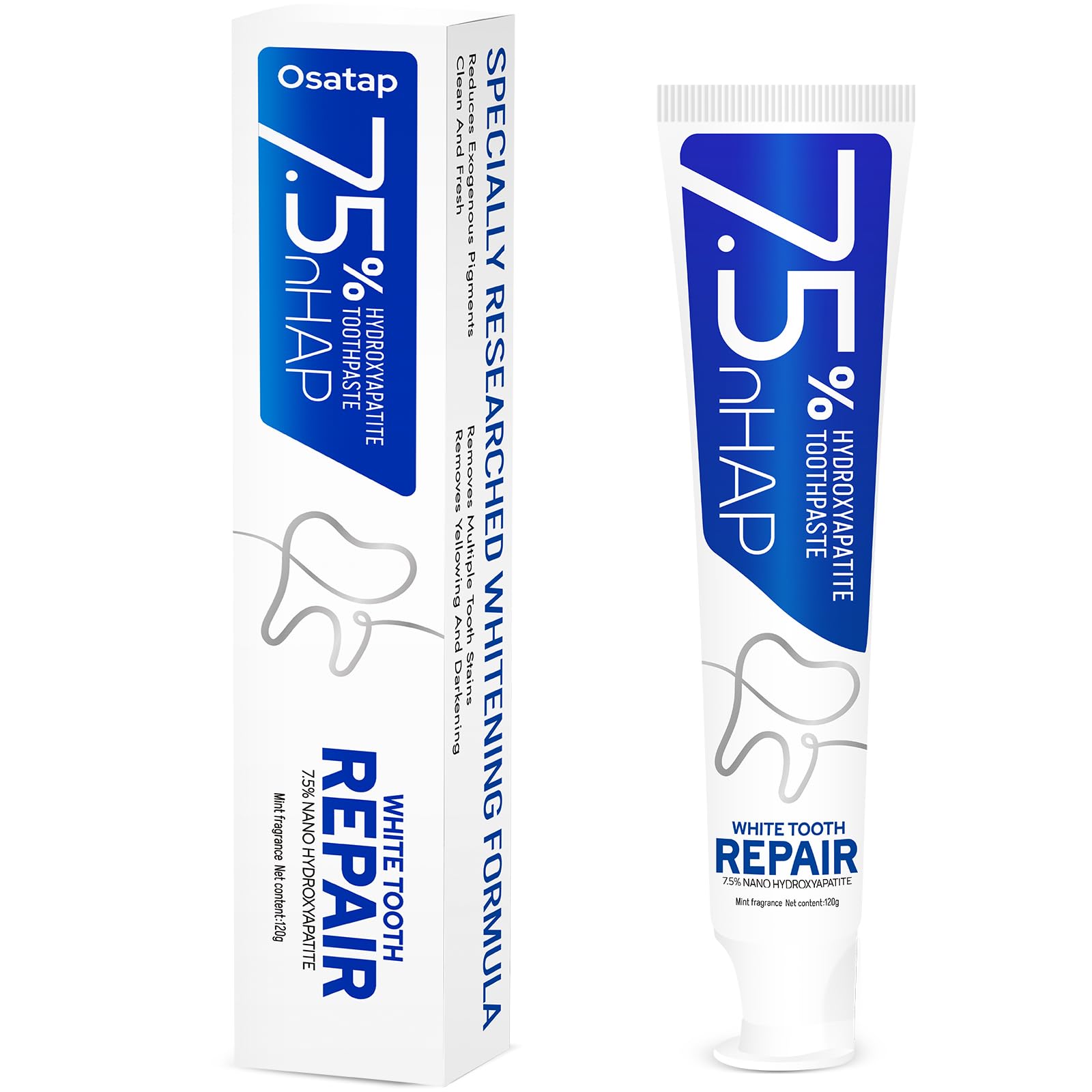 7.5% nano hydroxyapatite toothpaste fluoride free enamel repair sensitive teeth whitening