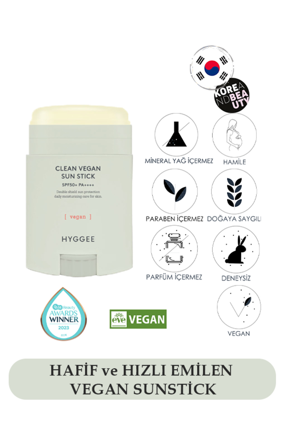Dogal Günes Koruma:HYGGEE Vegan Sunstick, ciltteki zararli UV isinlarina karsi dogal bir bariyer olusturur ve cildinizi günes yanigina karsi korur.
