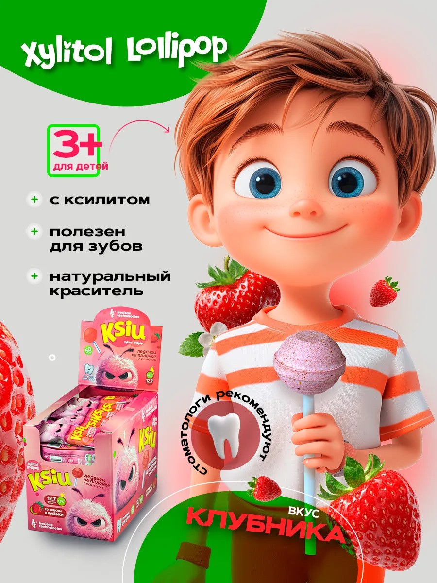 Леденцы Xylitol Lollipop со вкусом Клубники (50 шт.) — настоящая находка для ценителей сладкого!