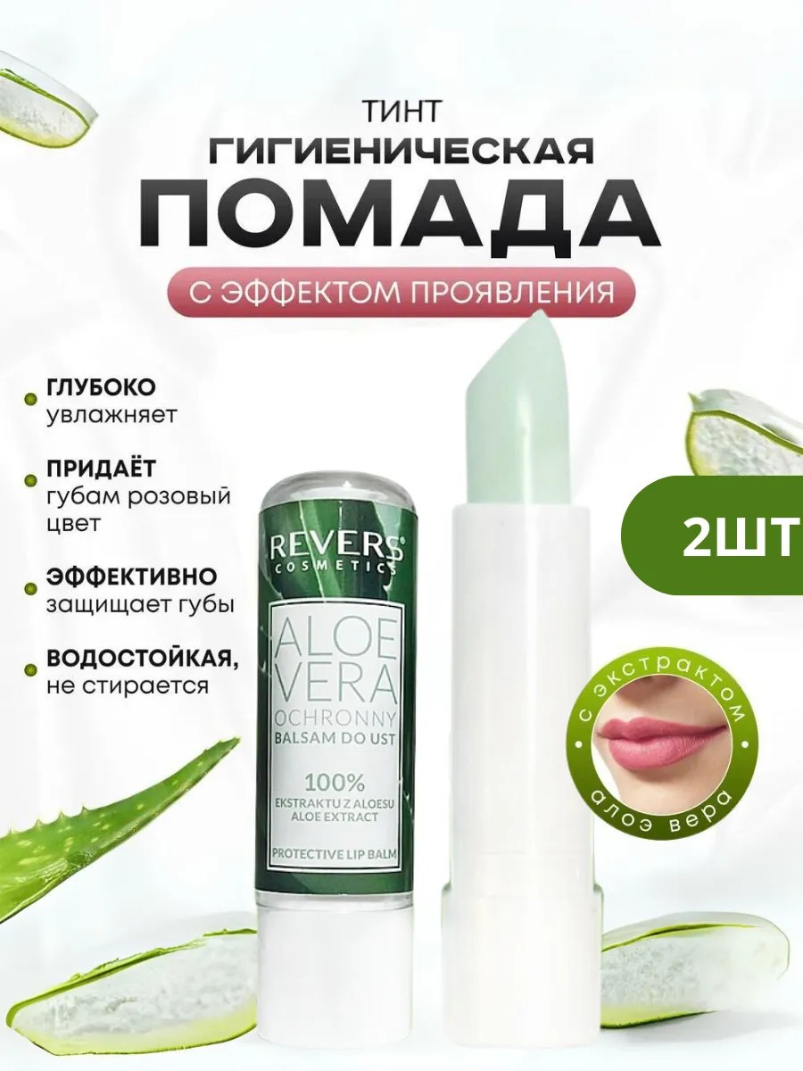 Набор из 2 штук — идеальное решение для ежедневного ухода! Гигиеническая помада для губ с натуральным компонентом — экстрактом алоэ вера — бережно ухаживает за кожей, питает и защищает её от пересыхания. Этот бальзам для губ незаменим в любое время года: он помогает сохранить мягкость и эластичность даже в ветреную или морозную погоду.