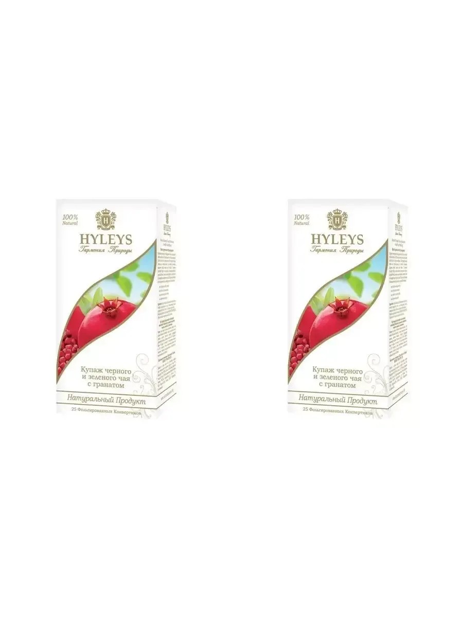 HYLEYS Чай черный и зеленый с гранатом, 2 уп по 25 пакетиков