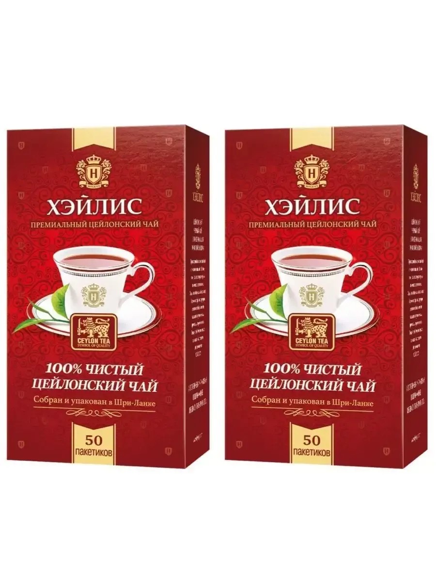Hyleys, Чай в пакетиках Цейлонский, в комплекте 2 упаковки по 50 пакетиков, общий вес 210 гр.Превосходный высокогорный чай с лучших плантаций о. Цейлон, в одноразовых двухкамерных пакетиках с ярлычками. Создан из отборных чайных листьев бережно собранных вручную для того, чтобы вы смогли насладиться утонченным ароматом и ярким вкусом. Подарите себе минуты отдыха за чашкой настоящего цейлонского чая ХЭЙЛИС !