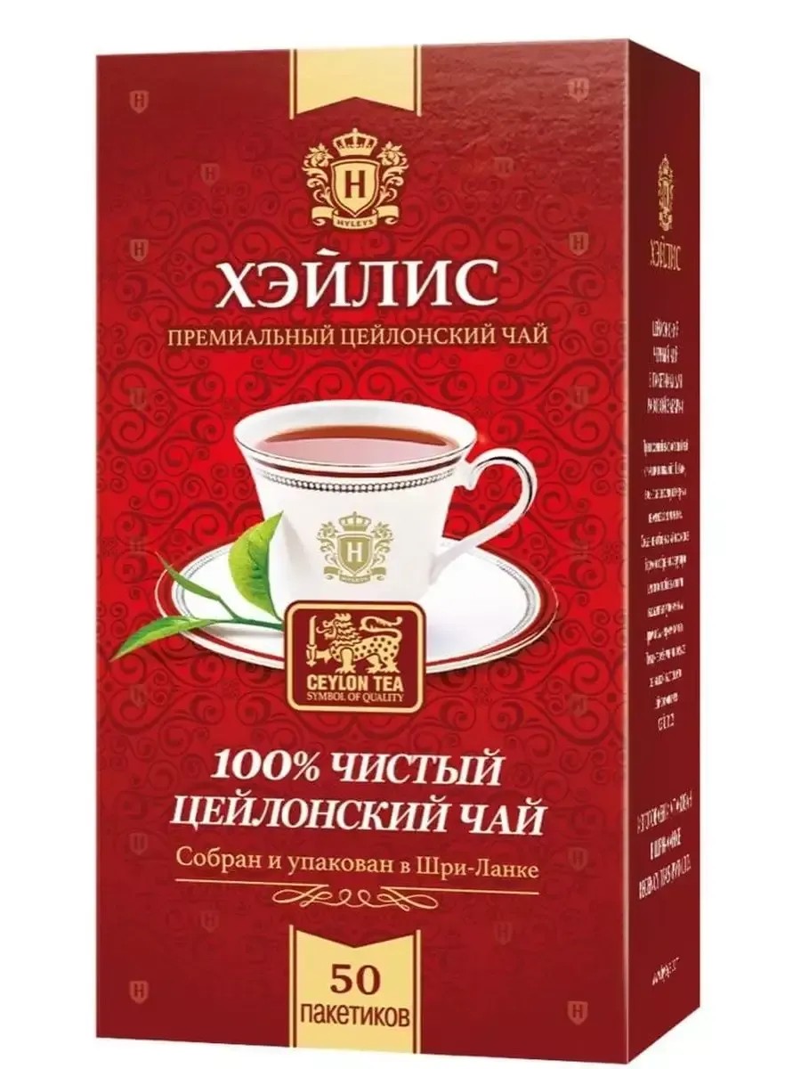 Hyleys Black Tea, Ceylon, 50 bags of 2 grams each. Ceylon is a magnificent black tea, carefully hand-picked from the best plantations and selected for you by our experts. A cup of invigorating tea will improve your mood, increase vitality, and restore your energy throughout the day.