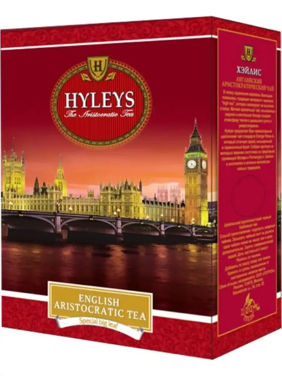 Hyleys Aristocrat Tea, 100g, Extra Large-Leaf Black. This English aristocratic tea has a rich bouquet, exquisite flavor, and subtle sweet aroma. Ideal for afternoon and evening tea. Preparation: Steep the tea leaves in boiling water, using 1 teaspoon per serving. Let steep for 2-3 minutes. Filtered water is recommended. Store in a cool, dry, odor-free place with a relative humidity of no more than 70%. Avoid exposure to direct sunlight.