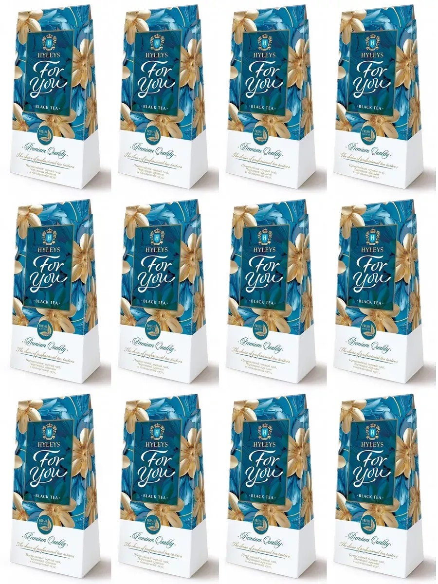 Hyleys For You Medium Leaf Black Tea, 50g. Directions: Rinse the teapot with boiling water. Add tea at a rate of 1 teaspoon per cup plus 1 teaspoon per teapot. Pour boiling water (100°C) over the tea and let steep for 4 minutes. This gift-wrapped tea makes a wonderful gift for any occasion. Ingredients: Medium leaf black Ceylon tea. Set of 12 teapots, 50g each.