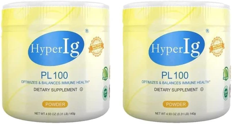 HYPERIG PL-100 Egg Protein Powder Hyperimmune Egg Supplements 140g - Immune Boost Digestive Health Joint Care Energy & Muscle Strength Gluten-Free (2-Canisters)
