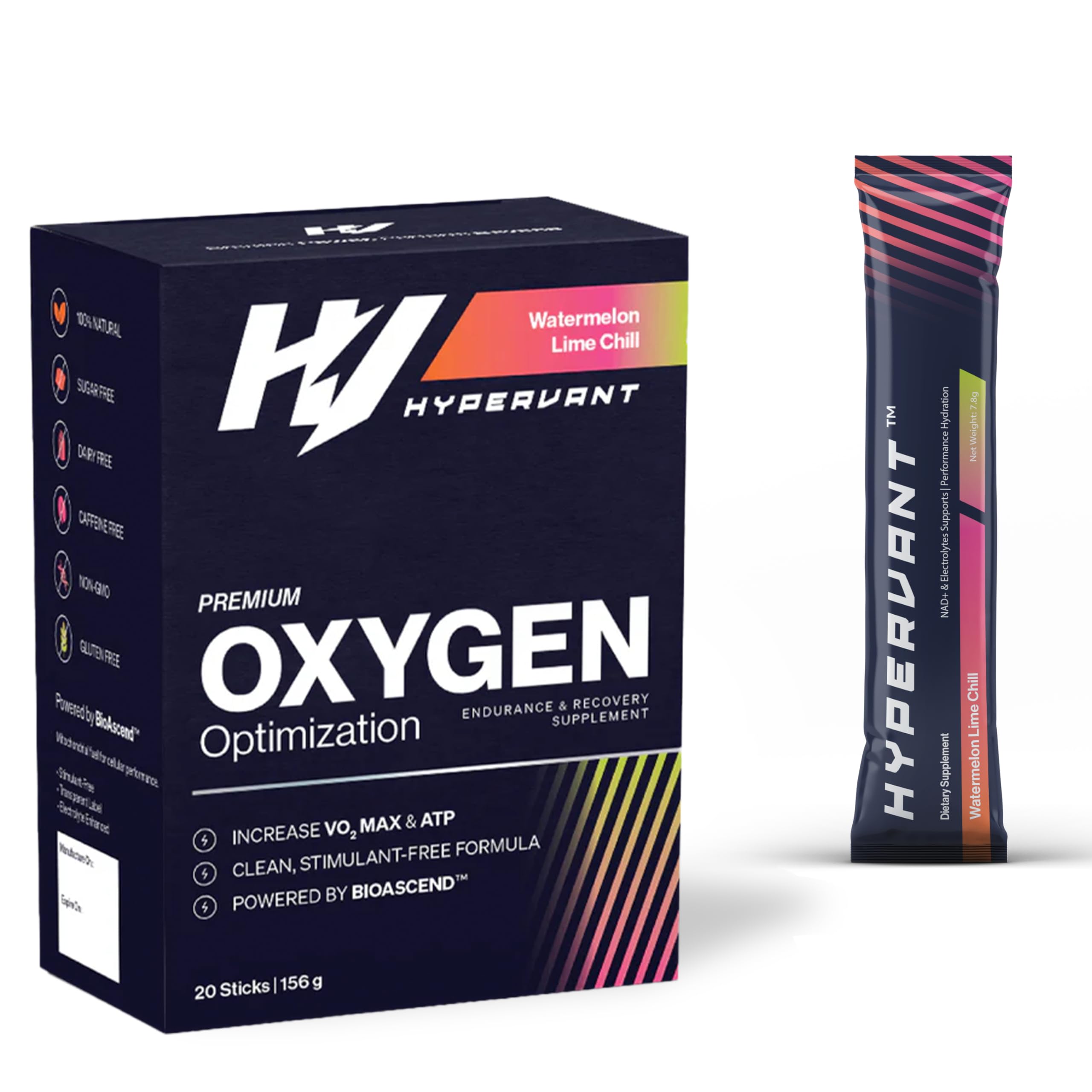Hypervant Oxygen is an elite, stimulant-free daily performance supplement designed to power endurance, longevity, clean energy, and nitric oxide support in one advanced drink mix. Featuring NMN for cellular energy and healthy aging, adaptogenic cordyceps for oxygen utilization and resilience, plus ingredients that support circulation, hydration, and pump, Hypervant Oxygen gives you an extra boost for training, work, and life—without sugar, jitters, or crash. Just tear a stick, mix with water, and experience smooth, sustained performance you can use every day.