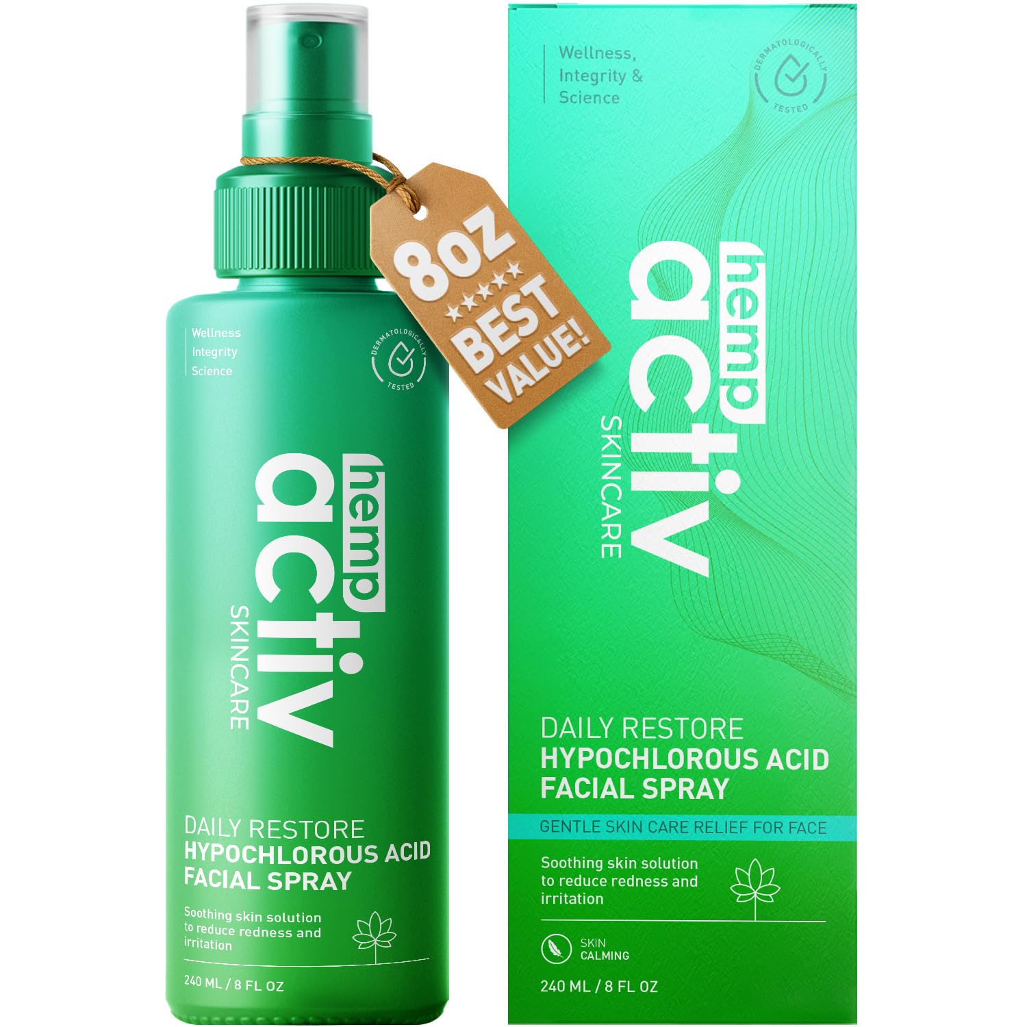 Essential for Everyday Use: Our multipurpose HOCL spray for home is also ideal for travel, on the go, or post-workout. The convenient 8oz spray bottle can be used throughout the day for soothing and balancing benefits to sensitive skin or dry-skin. Refreshes and Balances: Hydrate and soothe stressed skin with our gentle, ultra-calming face mist. Free from parabens, sulfates, fragrance, and alcohol, this HOCl spray helps improve the appearance of blemishes while refreshing skin from daily pollutants without over-drying. Made for All Skin Types: Hempactiv's hydrating facial spray cools and hydrates after cleansing, workouts, or long days. Our hydrating facial mist restores moisture and helps support the skin barrier. Our pH balanced formula is suitable for sensitive, redness-prone, acne-prone, dry, oily, or combination skin. Angry Skin Support: Known for being skin-compatible and non-irritating, adding a hypochlorous acid facial mist to your skincare routine helps cleanse and soothe the skin while leaving it feeling hydrated and calm. Our HOCL facial cleanser helps support your skin barrier for a happier complexion. Hypochlorous Acid Spray for Face and Body: Hypochlorous acid (HOCL) is a compound naturally produced by our own body. Our double-hero hypochlorous acid spray for skin helps improve the appearance of breakouts, balance oil, and tone skin for a visibly smoother complexion. Perfect daily face mist and toner alternative.
