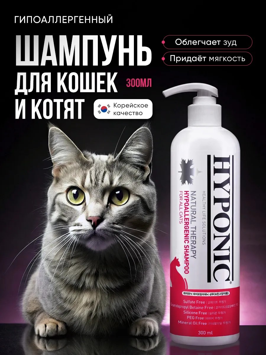 Hyponic Гипоаллергенный шампунь для кошек и котят всех пород 300 мл