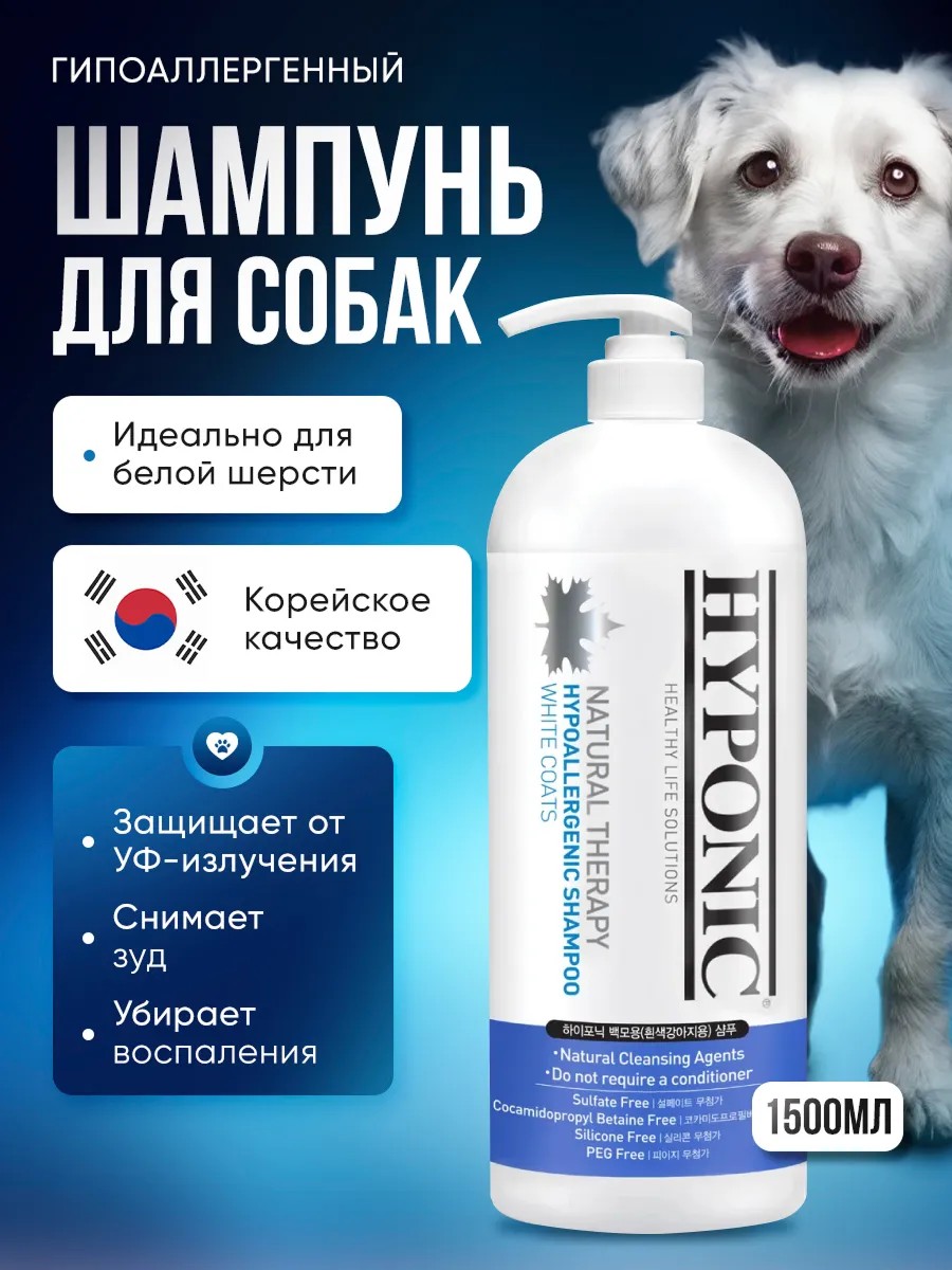 Hyponic Гипоаллергенный шампунь для собак с белой шерстью 1500 мл