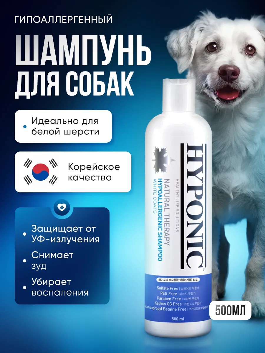 Hyponic Гипоаллергенный шампунь для собак с белой шерстью 500 мл