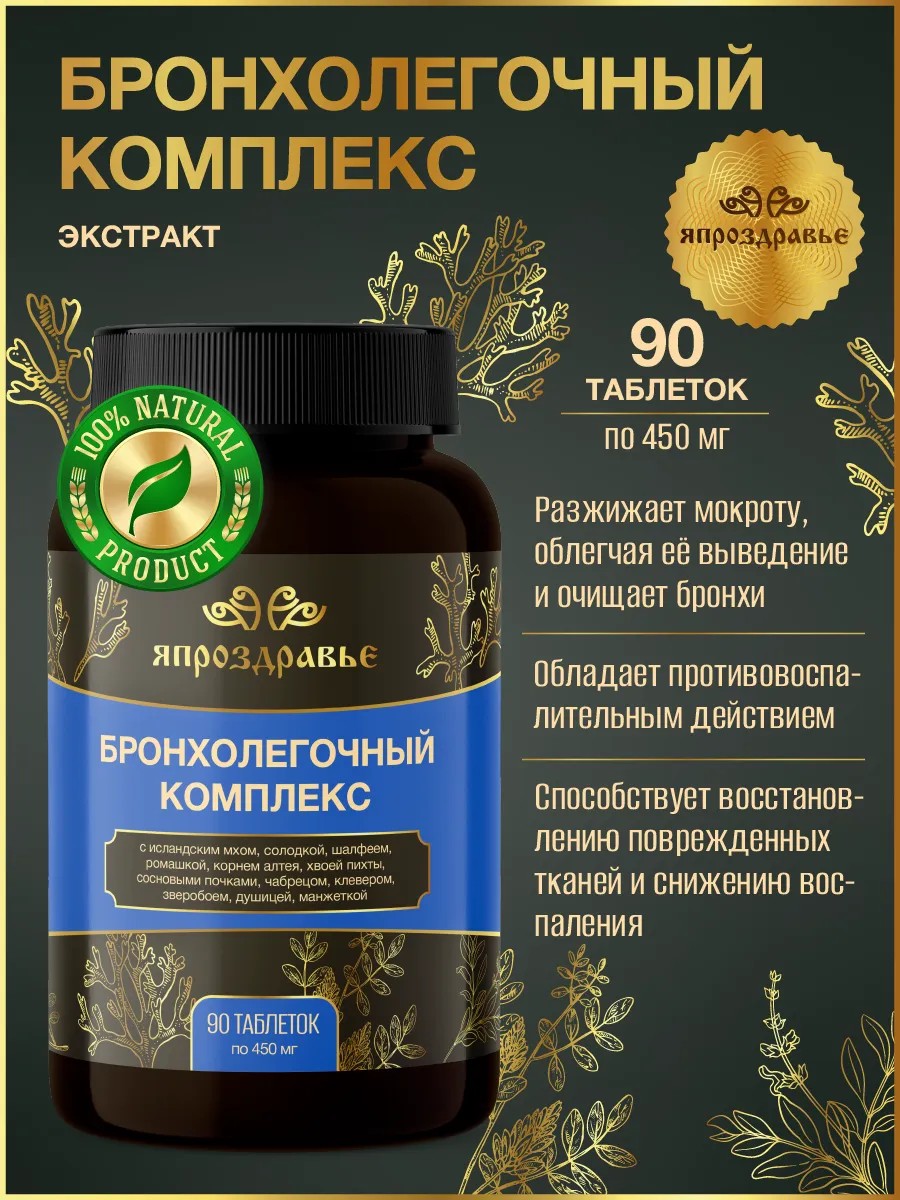 | Package Contents | Bronchopulmonary complex - 90 tablets weighing 450 mg |