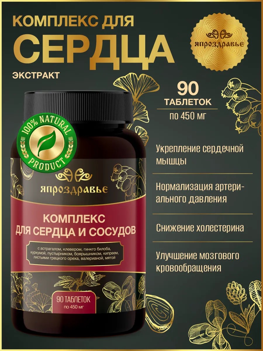| Комплектация | Комплекс для Сердца и сосудов - 90 таблеток массой 450мг |
