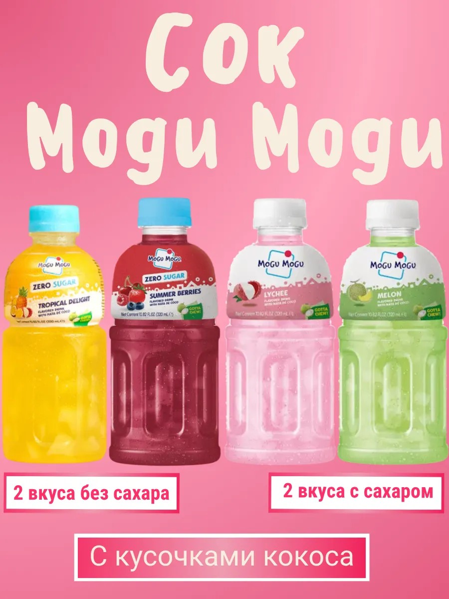 Набор соков Mogu Mogu — 4 вкусов (2 без сахара + 2 с сахаром)