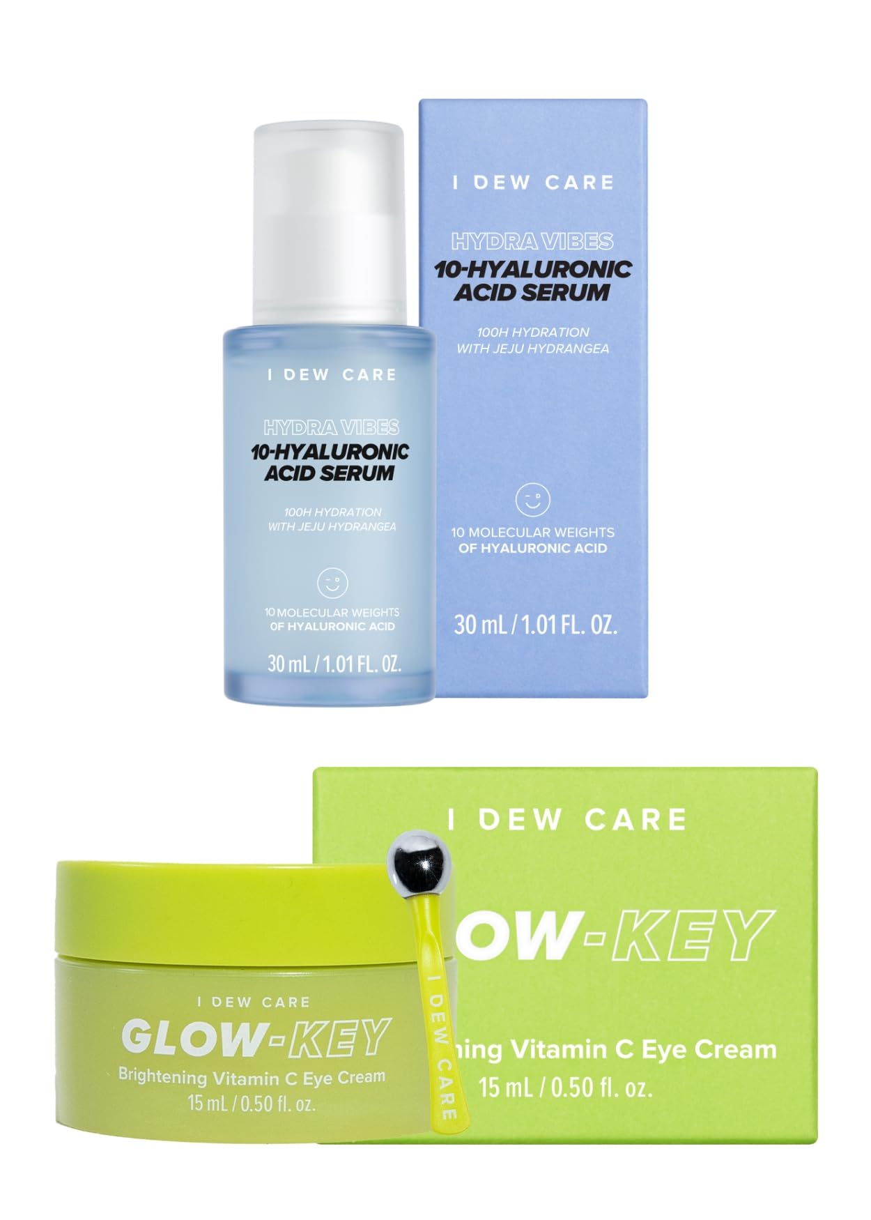 I DEW CARE Hydra Vibes 10-Hyaluronic Acid Serum 30ml 1.01 fl. oz. + Eye Cream with Applicator - Glow-Key 0.50 Fl Oz Bundle