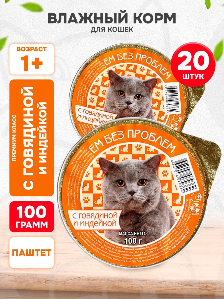 Корм влажный для кошек говядина индейка 100 г 20 шт