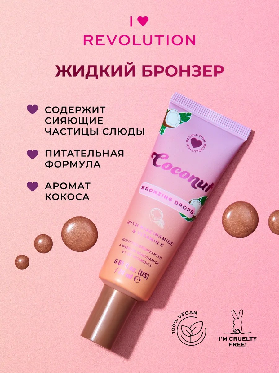 Создайте тот самый идеальный сияющий загар «как после отпуска» с I Heart Revolution Coconut Bronze Tinted Glow Drops!