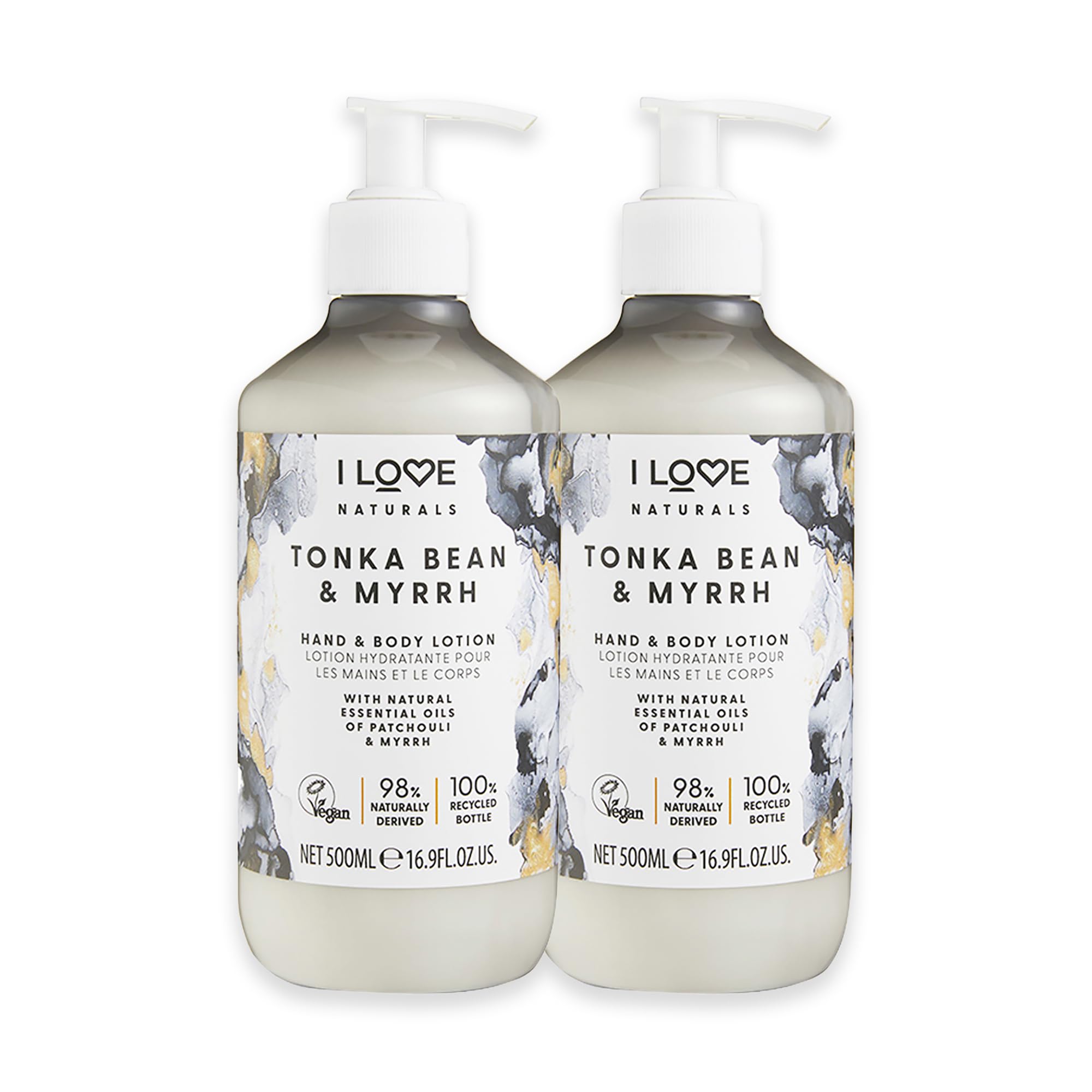 I LOVE Naturals Tonka Bean and Myrrh Hand and Body Lotion - Moisturizing Body and Hand Cream for Dry Skin - Coconut Oil and Shea Butter - 2 pc