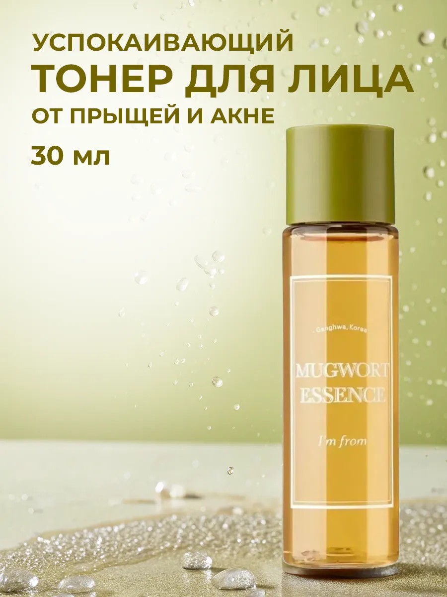 This Korean brand's I'm From Mugwort Essence cleansing toner contains 100% mugwort extract and is ideal for oily, problematic skin prone to breakouts, acne, and rosacea. This toner soothes inflammation and prevents new breakouts, tightens pores, regulates sebum production, and perfectly mattifies. Mugwort, a component of this acne toner, is rich in vitamins and minerals, so it effectively removes toxins from the skin and helps treat dermatitis, demodicosis, and acne, including teenage acne. After regular use of this moisturizing toner, skin appears healthy and well-groomed, and imperfections specific to your skin type become less visible or disappear. This Korean anti-aging moisturizing facial toner has a thick, watery texture and a pleasant herbal aroma. It absorbs perfectly without leaving a sticky or greasy feeling, leaving your skin matte. Directions: Apply this mattifying Korean facial toner to cleansed skin using gentle, patting movements. Then, apply I'm From Mugwort Cream with mugwort extract. This Korean moisturizing facial toner is suitable for daily use by men, women, and teenagers. I'm From Mugwort skincare products are designed to address a variety of skin concerns, including pimples, acne, blackheads, rosacea, various inflammations, and breakouts. For best results, we recommend using this problem skin toner in combination with other brand products. Moisturizing facial toner, cleansing facial toner, toner for oily skin, and acne toner for teenagers.