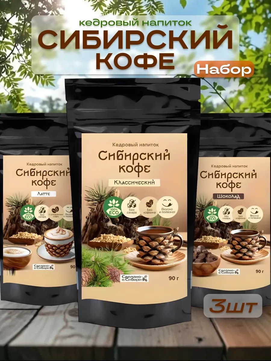 Набор кедрового кофе (3 штуки) – вкусный и полезный выбор для ценителей натуральных напитков без сахара и кофеина!