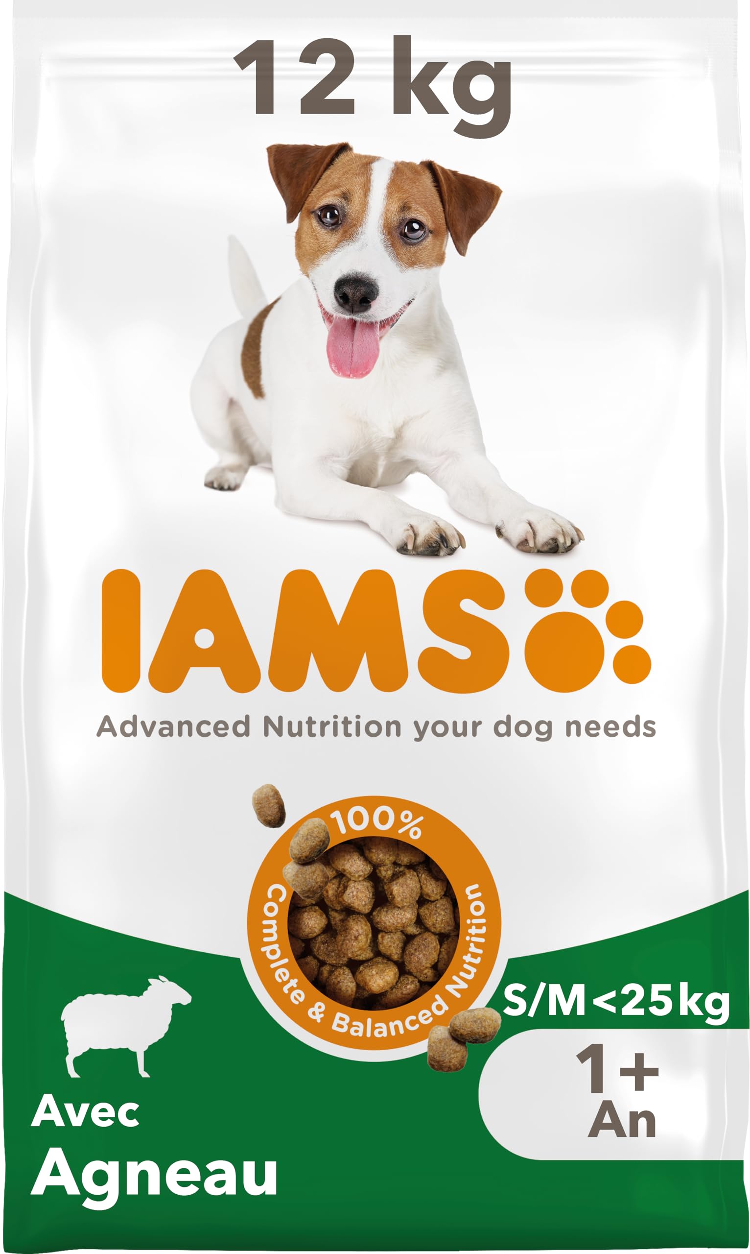 Croquette IAMS VITALITY Dog Adult small and medium breeds Lamb Composition dehydrated chicken and turkey 30 (includes chicken 18 ), corn, corn grits, barley, animal fat, lamb (4.1 ), sorghum, dehydrated beet pulp (2.9 ), chicken juice, minerals (includes sodium hexametaphosphate (0.38 )), fructo-oligosaccharides (0.21 ), dehydrated brewer's yeast.Additives: ( kg), vitamins: vitamin A: 55524IU, vitamin D3: 1596IU, vitamin E: 138mg. Trace elements: copper sulfate (pentahydrate) (copper): 10mg, potassium iodide (iodide): 1.3mg, manganese sulfate (monohydrate) (manganese): 4.7mg, zinc oxide (zinc): 118mg. Acidity regulator: sodium bisulfate: 1 . Supplement added at the time of manufacture.Analytical constituents: protein 26 , fat content 15 , omega-6 fatty acids 2.5 , omega-3 fatty acids 0.20 , crude ash 6.7 , crude fiber 2.1 , calcium 1.5 , phosphorus 1.2 . DIRECTIONS FOR USE Always keep fresh water available. The transition to IAMS must be done gradually, within 4 days. The amount of food taken by the dog may vary depending on age, character and activity level.Dog food lovingly developed with veterinarians and over 70 years of experience. Crunchy kibble and mineral levels tailored for healthy teeth. Antioxidant blend with vitamin E to help support your dog's immune system. Wheat-free pet food with no fillers, artificial colors, flavors, or GMOs. Dog food for small and medium breeds containing up to 85 animal protein to support seven signs of healthy vitality. Croquette IAMS VITALITY Chien Adult petite et moyenne races Agneau Composition poulet et dinde déshydratés 30 (comprend poulet 18 ), maïs, gruau de maïs, orge, graisse animale, agneau (4.1 ), sorgho, pulpe de betterave déshydratée (2.9 ), jus au poulet, substances minérales (comprend héxamétaphosphate de sodium (0.38 )), fructo-oligosaccharides (0.21 ), levure de bière déshydratée.Additifs: ( kg), vitamines : vitamine A: 55524IU, vitamine D3: 1596IU, vitamine E: 138mg. Oligo-éléments : sulfate de cuivre (pentahydraté) (cuivre): 10mg, iodure de potassium (iodure): 1.3mg, sulfate de manganèse (monohydraté) (manganèse): 4.7mg, oxyde de zinc (zinc): 118mg. Correcteur d'acidité: bisulfate de sodium: 1 . Supplémentation ajoutée au moment de la fabrication.Constituants analytiques: protéines 26 , teneur en matières grasses 15 , acides gras oméga-6 2,5 , acides gras oméga-3 0,20 , cendres brutes 6,7 , cellulose brute 2,1 , calcium 1,5 , phosphore 1,2 . MODE D'EMPLOI Laissez toujours de l'eau fraîche à votre disposition. Le passage à IAMS doit se faire progressivement, dans un délai de 4 jours. La quantité de nourriture prise par le chien peut varier en fonction de l'âge, du caractère et du niveau d'activité.Aliments pour chiens développés avec amour avec des vétérinaires et plus de 70 ans d'expérience. Croquettes croquantes et teneurs en minéraux adaptées pour des dents saines. Mélange antioxydant avec vitamine E pour aider à soutenir le système immunitaire de votre chien. Aliments pour animaux sans blé, sans agents de remplissage, colorants artificiels, arômes ou OGM. Aliments pour chiens de petites et moyennes races contenant jusqu'à 85 de protéines animales pour soutenir sept signes de vitalité saine.