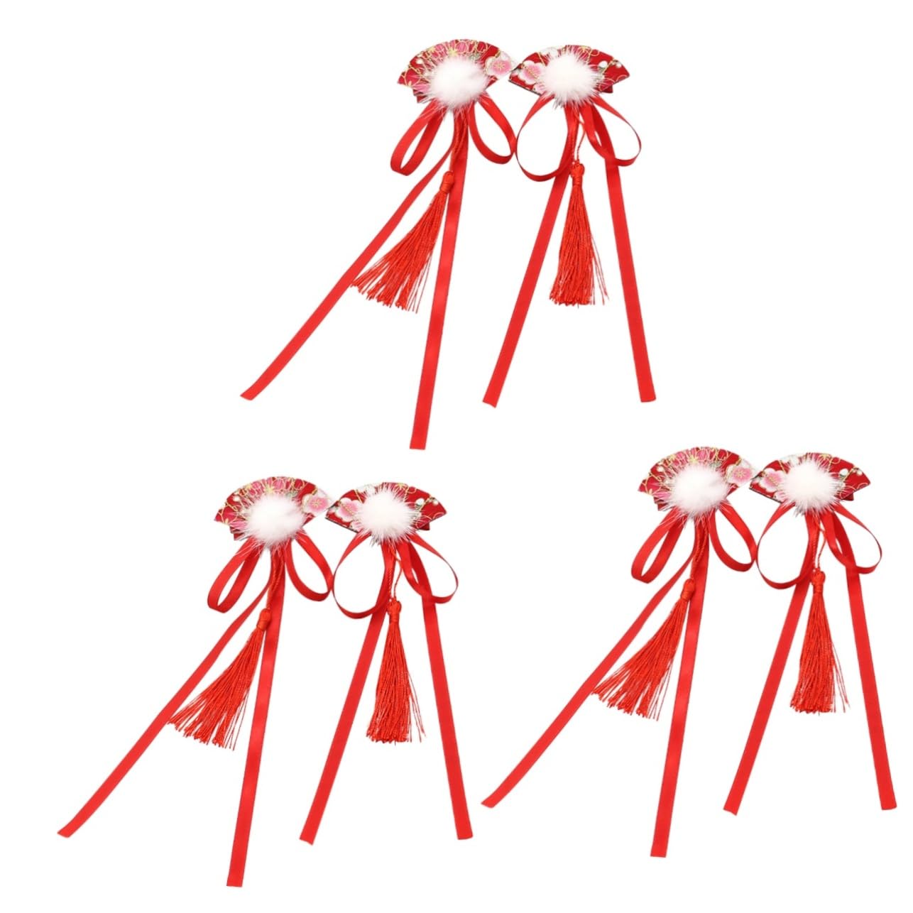 ibasenice 3 Pairs Children's Hairpin Butterfly Hair Clips Chinese New Year Hair Clips Hair Clip Accessories Polymer Clay Cane Styling Hair Clips Decor Red Fabric Ribbon Woman Chinese Style
