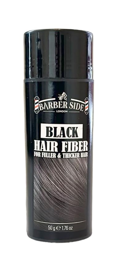 ican Barber Side London Hair Fiber For Fuller Thicker Hair Hair Loss Concealer for Men and Women Black 50g SAFETY WARNING keep away from childrenspecial hair fiber in it, it darkens your scalp and makes your hair look thick, full in a short time, it helps to achieve a more natural and realistic look. hair plumping powder which is especially preferred by those who have problems with shedding hair, baldness and sparseness, closes the thin area and eliminates the sparse appearance of the hair. black hair fiber for fuller thicker hair.