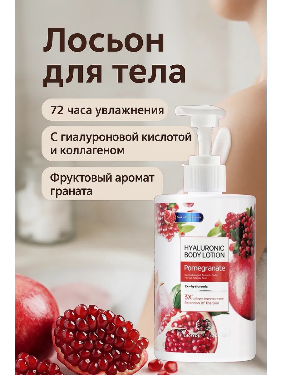 | Полное наименование товара | Лосьон для тела с гиалуроновой кислотой и коллагеном гранат 300 мл |