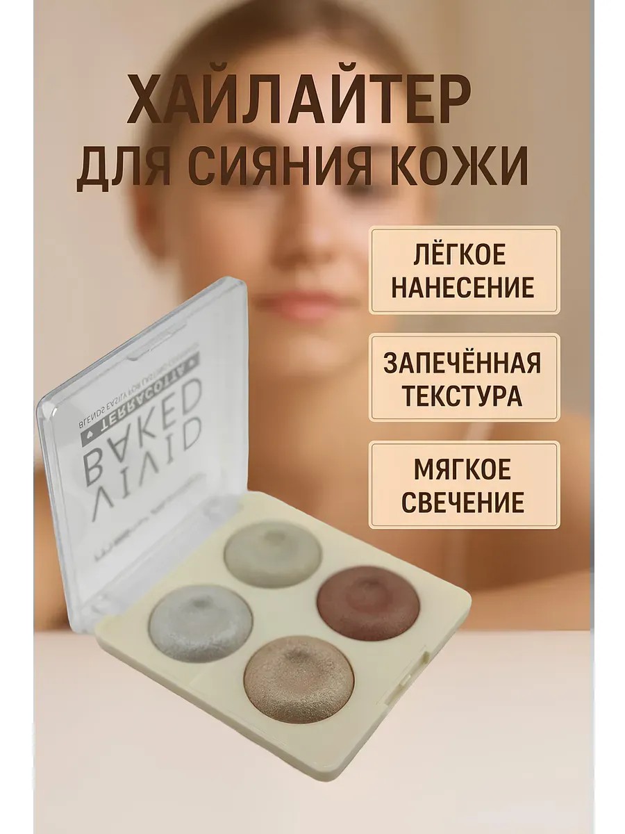 Запечённый хайлайтер в палетке на 4 тона ― это средство, которое подчёркивает естественную красоту и придаёт коже ухоженный блеск. Лёгкая текстура плавно распределяется, не оставляет пятен и создаёт эффект мягкого свечения. Удобно комбинировать оттенки, добиваясь как нежного дневного результата, так и более выразительного вечернего макияжа.