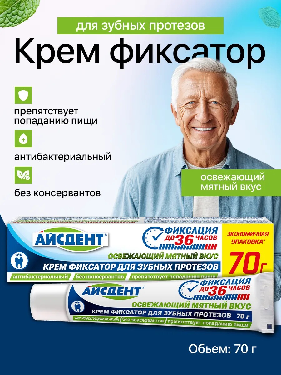 АЙСДЕНТ Крем клей для зубных протезов мята 70 г