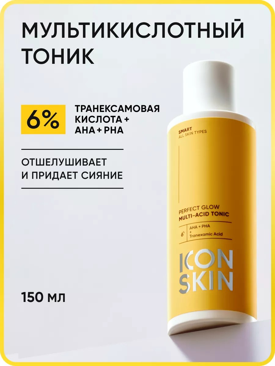 Мультикислотный тоник из серии SMART — средство направленного ухода за кожей, которой требуется эффективное, но мягкое отшелушивание. Наиболее распространенными последствиями недостаточного отшелушивания могут стать: тусклый вид и сероватый цвет кожи, неровный тон, шелушение вследствие обезвоженности, расширенные и/или закупоренные поры и заметные следы акне. Тоник Perfect Glow бережно удаляет с поверхности кожи ороговевшие частицы и способствует улучшению регенерации кожи, уменьшая выраженность проблем и их повторное появление.Комбинация кислот в формуле тщательно продумана: они не только дополняют, но и усиливают эффективность друг друга. AHA-комплекс (гликолевая, яблочная, миндальная и винная кислоты) ускоряет клеточное обновление, очищает поры, выравнивает рельеф кожи. Глюконолактон предотвращает обезвоживание, транексамовая кислота работает против пигментации и окислительного стресса, а гель алоэ вера увлажняет и успокаивает. В результате применения кожа становится более свежей, гладкой и сияющей, поры и следы акне — менее заметными. Тоник быстро впитывается, не оставляя на коже ощущения липкости