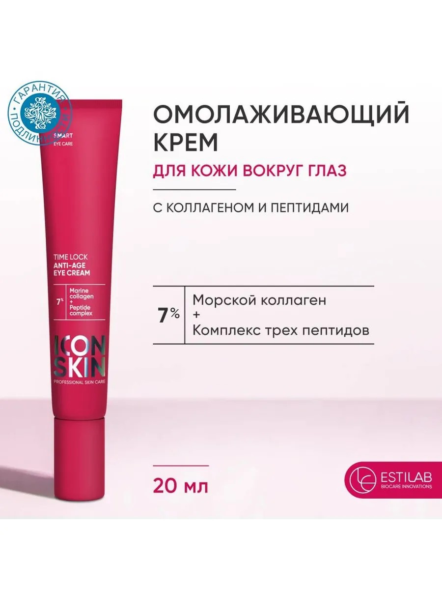 Крем для кожи вокруг глаз Time Lock с морским коллагеном и тремя видами пептидов в составе оказывает комплексное антивозрастное действие на кожу вокруг глаз - интенсивно увлажняет и поддерживает оптимальный гидробаланс, уменьшает выраженность и глубину морщин, обладает ботулоподобным и противоотечным действием. Подходит как для профилактики, так и для коррекции возрастных изменений. При регулярном применении делает кожу вокруг глаз более гладкой, упругой и эластичной. Крем рекомендован для всех типов кожи, особенно в качестве регулярного ухода для профилактики и при появлении возрастных изменений. Имеет насыщенную текстуру, при этом быстро впитывается, не оставляя ощущения пленки и липкости. Результат применения: упругая и увлажненная кожа вокруг глаз, морщины менее выражены.