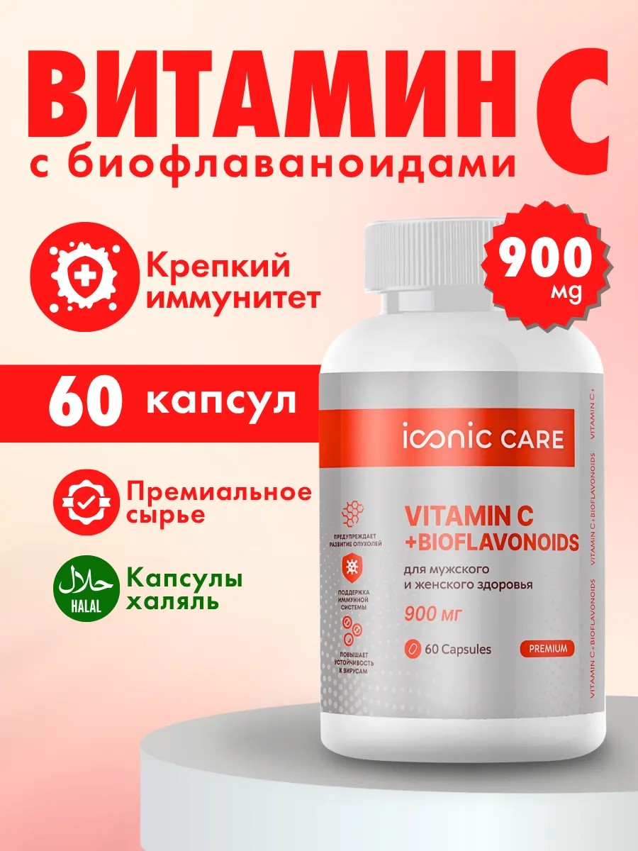 Iconic Care Vitamin C with Bioflavonoids is a comprehensive dietary supplement designed to support health and boost immunity. Sodium ascorbate ensures high bioavailability of vitamin C, while orange extract with 30% bioflavonoids enhances the vitamin's effectiveness and strengthens vascular walls. Microcrystalline cellulose acts as a reliable carrier, ensuring ease of administration and maximum absorption of the active ingredients. This complex is designed for those seeking to maintain high levels of health, especially during periods of increased stress or seasonal infections.