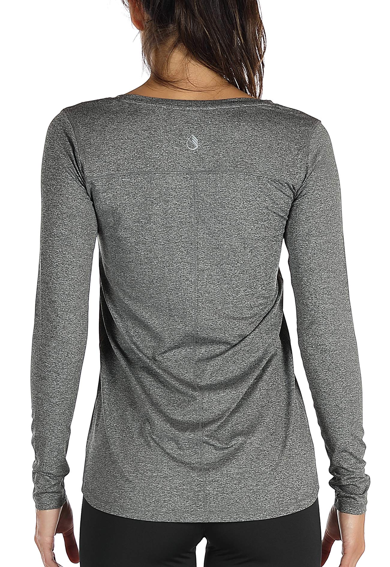 icyzone women's running shirt long-sleeved sports shirt breathable long-sleeved fitness top with thumb hole L dark grey