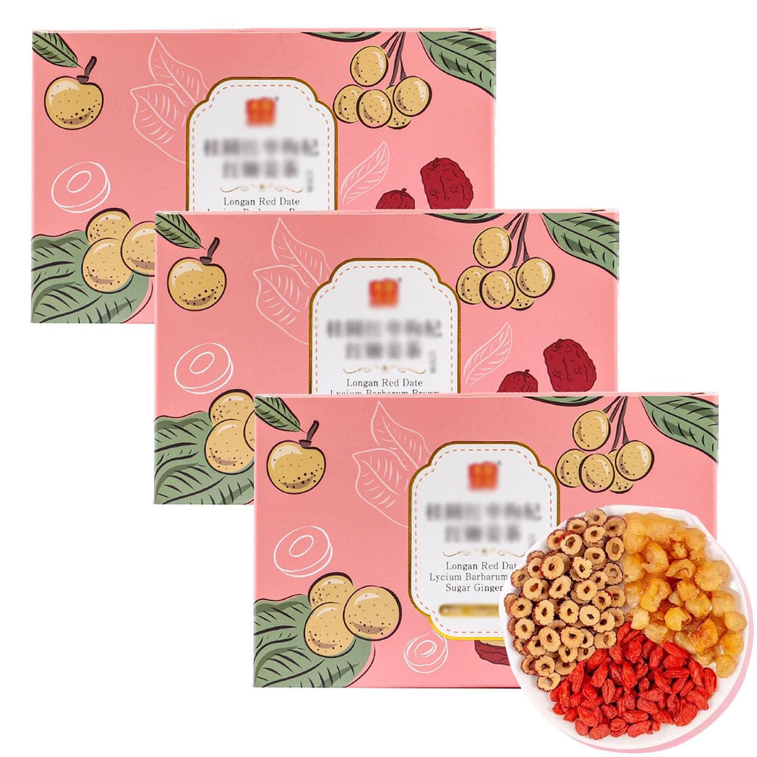 Sucre brun, thé longan au gingembre et aux dattes, datte rouge, baie, sucre brun et thé au gingembre, thé aux baies et au gingembre nourrissant et sain 3 pièces.