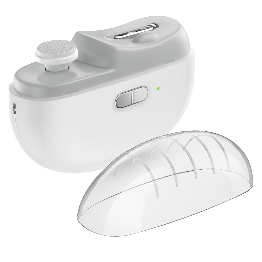 5.One-button operation, two-speed adjustment. The adjustable speed function allows the electric clipper to be used for both infants and adults. The low-speed setting is perfect for gentle polishing of nails for children aged 0-1, while the high-speed setting is suitable for adults. 4. Child locks are installed for preventing children from accidentally starting the electric clipper, ensuring family safety. Press and hold the dual keys to activate/deactivate the child lock and power supply, while the work indicator and auxiliary light turn on. Features: 1. Multifunctional electric nail scissors, trim nails + polish nails + polish nails, allowing you to easily harvest beautiful nails. 3.The compact electric nail clipper is easy to store and carry, allowing you to trim nails anytime, anywhere, whether , traveling or . 2. The auxiliary light helps you trim nails safely in dimly lit places without damaging them.