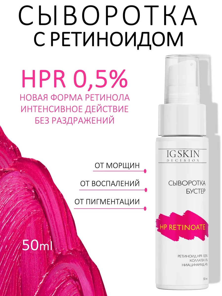 Сыворотка с ретиноидом HPR 0,5% (гидроксипинаколона ретиноат)., коллагеном 1%, ниацинамидом 4% и центеллой – интенсивный anti-age уход для молодости кожи.
